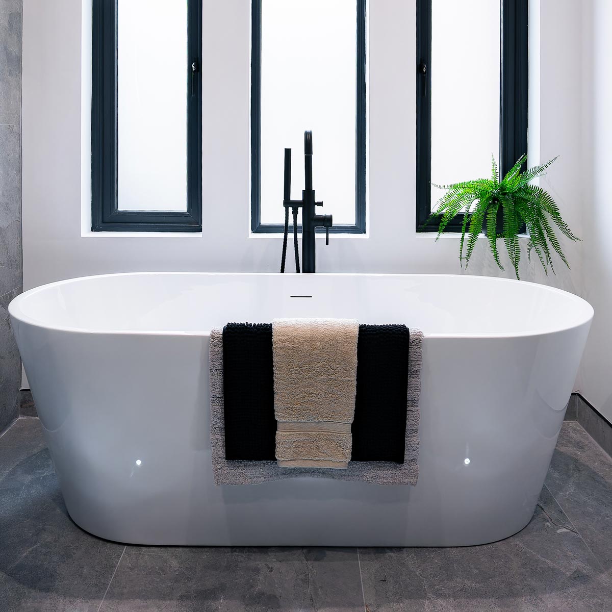 The free-standing nature of this bath means you have options about where you place it. Of course this decision has to take into consideration the location of the taps (this model is not suitable for tap holes*), but the free-standing nature gives you, well, more freedom.
